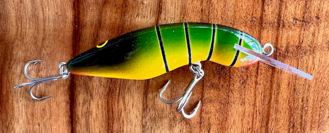 A shallow Running 62mm timber lure for bass, bream etc